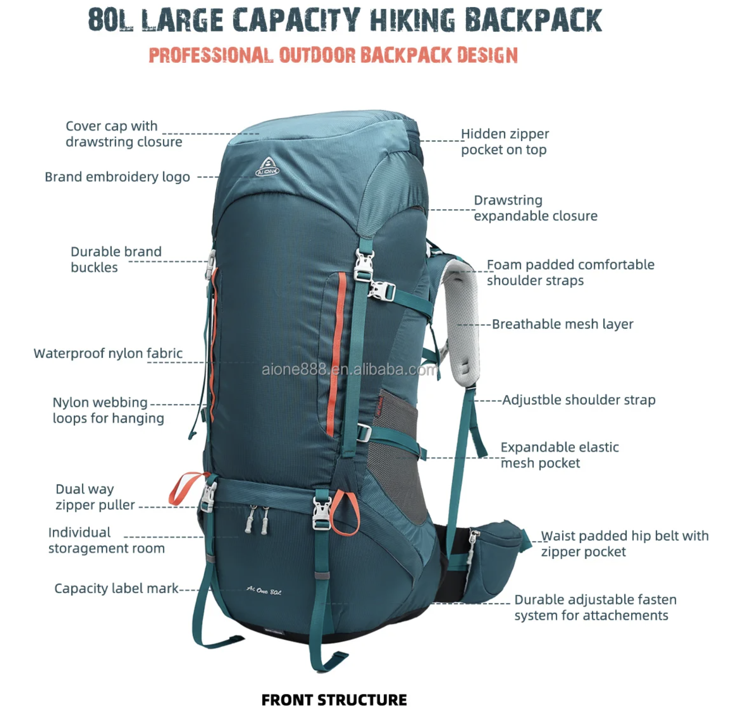 4.Multi-functional,80L big capacity,multi- pockets to fitting your accessories