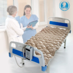 Place the deflated mattress on the patient’s bed. Connect the included air pump to the mattress tube inlet and plug into a standard 230V wall socket. The pump will begin the alternating pressure cycle automatically. Full inflation takes approximately 10–15 minutes for the first setup.